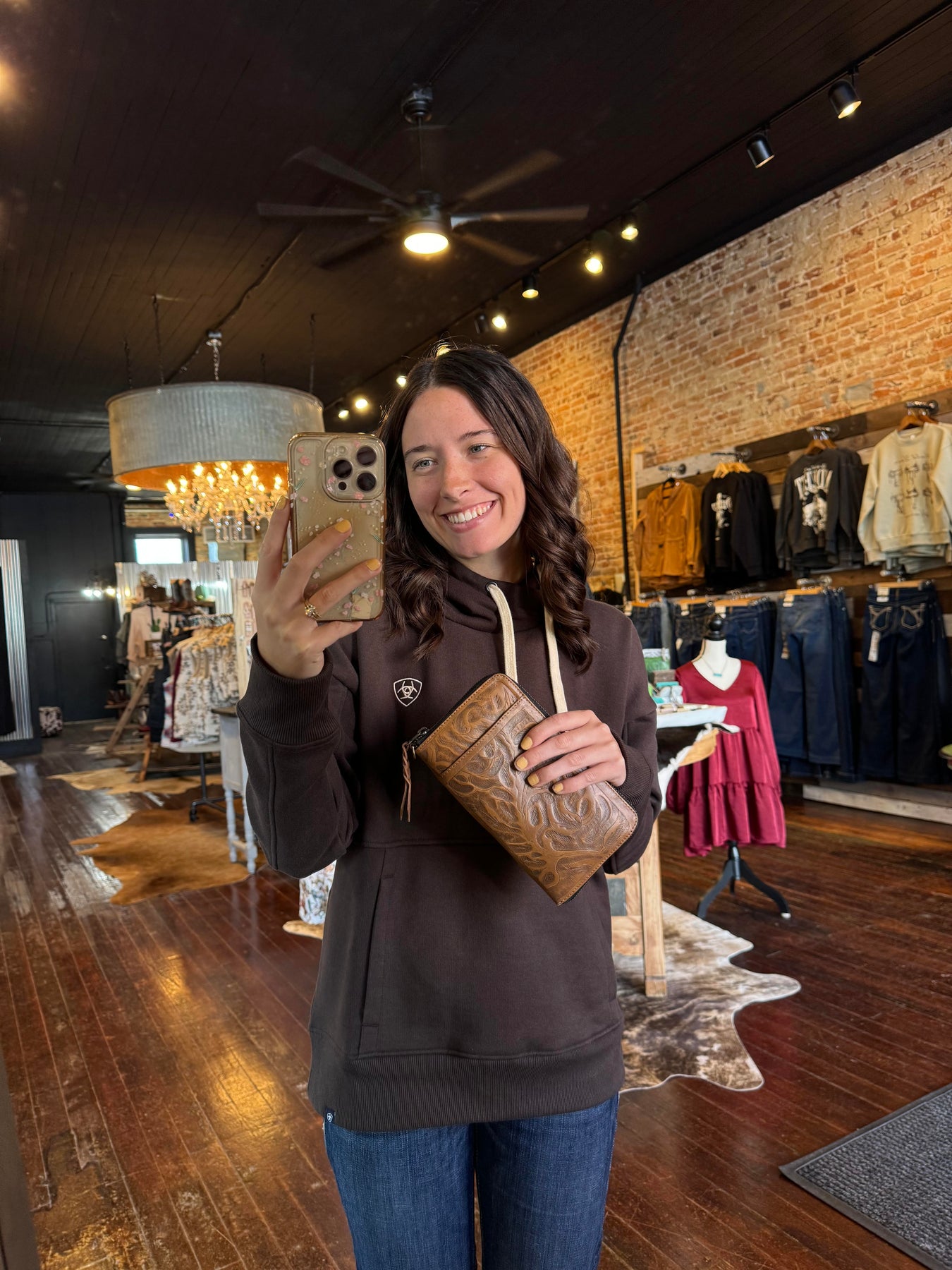 Someone once told me, “Being all-natural is the prettiest.” And honestly? They weren’t wrong. This Mathis wristlet brings that same effortless beauty—no filters needed. She’s hand-tooled, hand-dyed, and full of quiet confidence. Whether you're rocking a full face and boots or keeping it casual in sweats, this wristlet is your go-to for polished practicality.